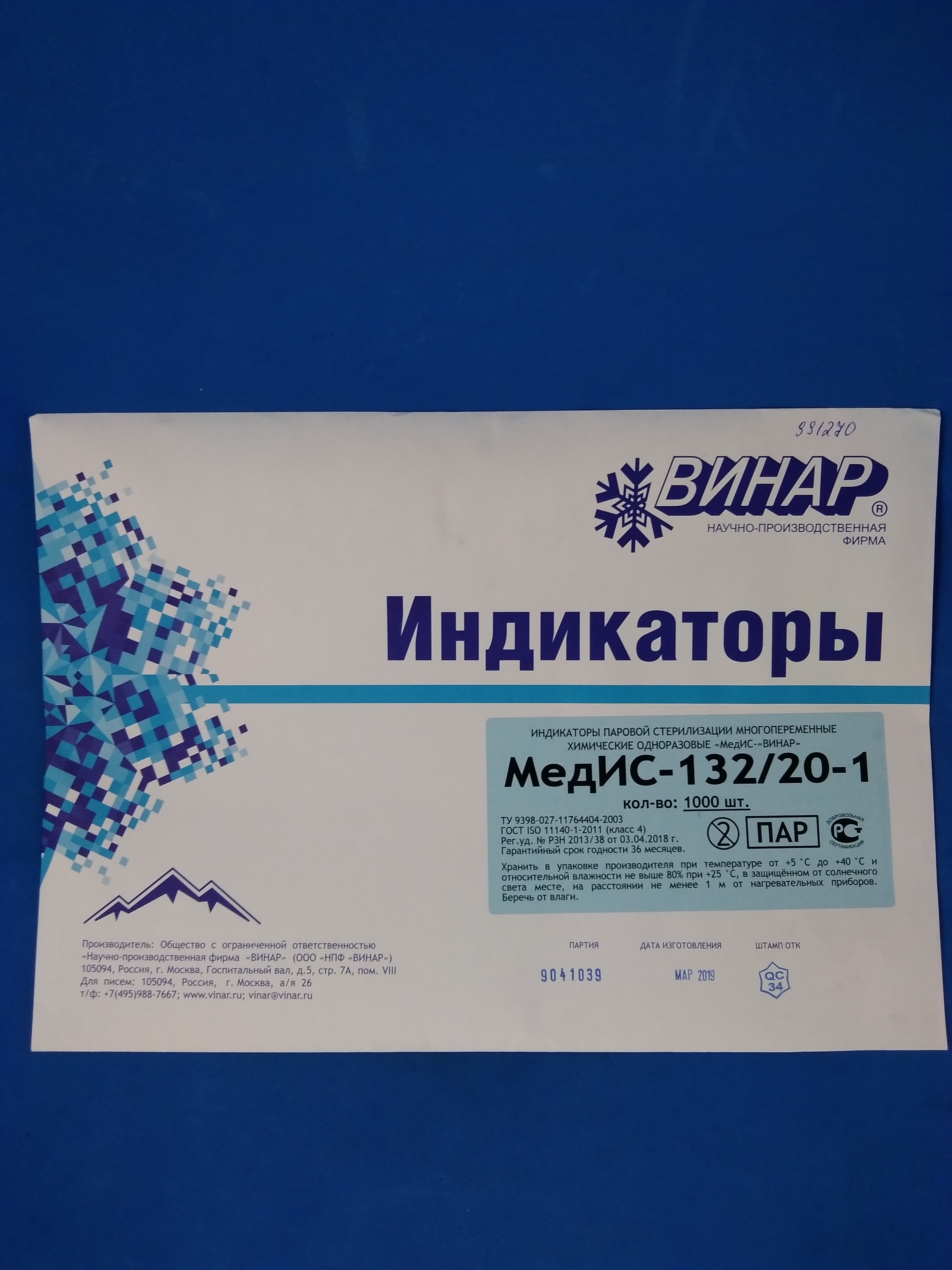 Индикатор паровой стерилизации бумажный МедИС-132/20 (на 1000 тестов), с липким слоем