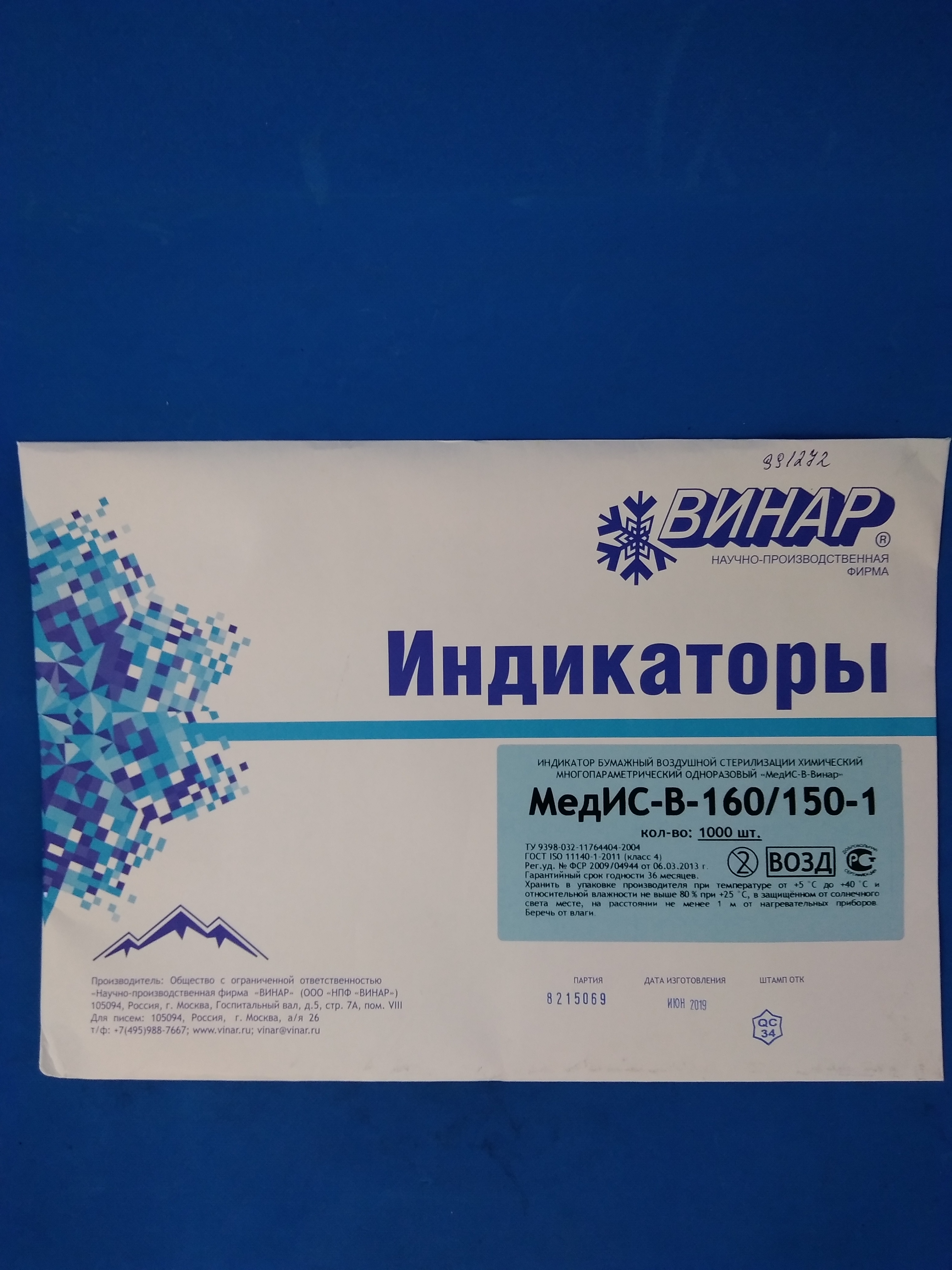 Индикатор стерилизации бумажный МедИС-В-160/150 (на 1000 тестов) (с липким слоем)