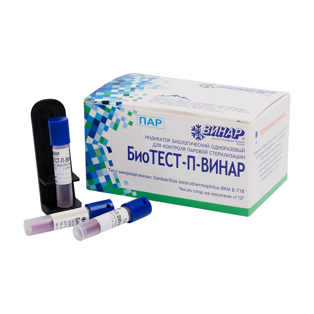 Индикатор автономный стерилизации биологический БиоТЕСТ-П-ВИНАР для контроля паровой стерилизации (автономн. 24 теста)