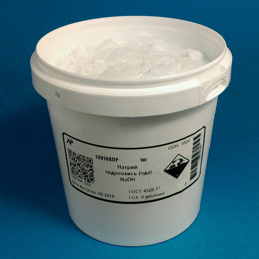 Продажа в розницу физическим лицам - в нашем интернет-магазине - перейти... Гидроокись натрия (чда) — гранулы белого цвета, хорошо растворимые в воде. Используются в разных областях промышленности — целлюлозная, косметическая, пищевая, химическая, нефтеперерабатывающая и др. Кроме того, едкий натрий (чда) может применяться в текстильной промышленности (для мерсеризации хлопка и шерсти), а также в гражданской обороне (для нейтрализации отравляющих веществ). Купить гидроокись натрия (чда) вы можете в компании «ЛенРеактив». В нашем каталоге представлены реактивы, изготовленные по стандартам ГОСТ — гидроокись натрия (чда) соответствует установленным нормативным показателям. Мы предлагаем разную фасовку товаров - гидроокись натрия (чда гост 4328 77) представлена в пяти вариантах упаковки от 0,1 кг до 60 кг.