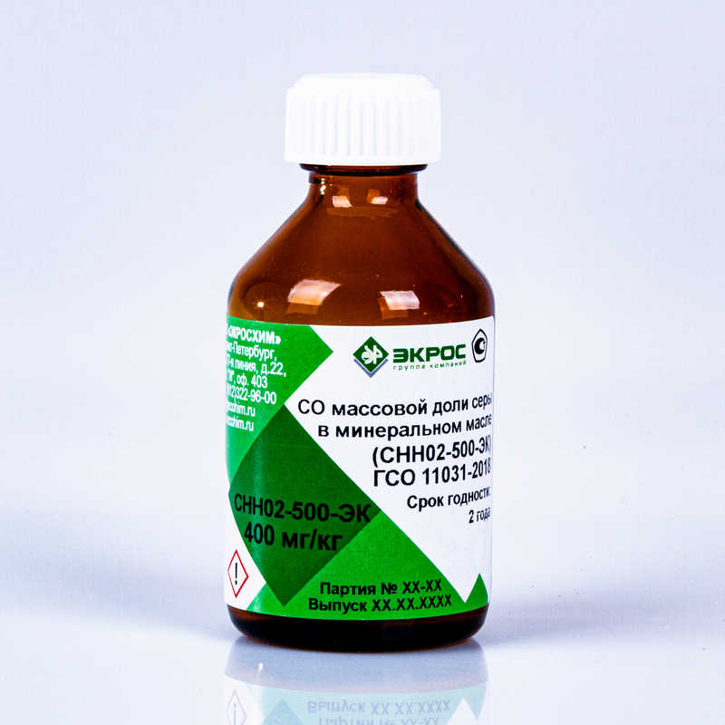 ГСО мас.доля серы в мин. масле СНН02-500 ЭК (300-500 мг/кг) (400 мг/кг) (50мл) 11031-2018