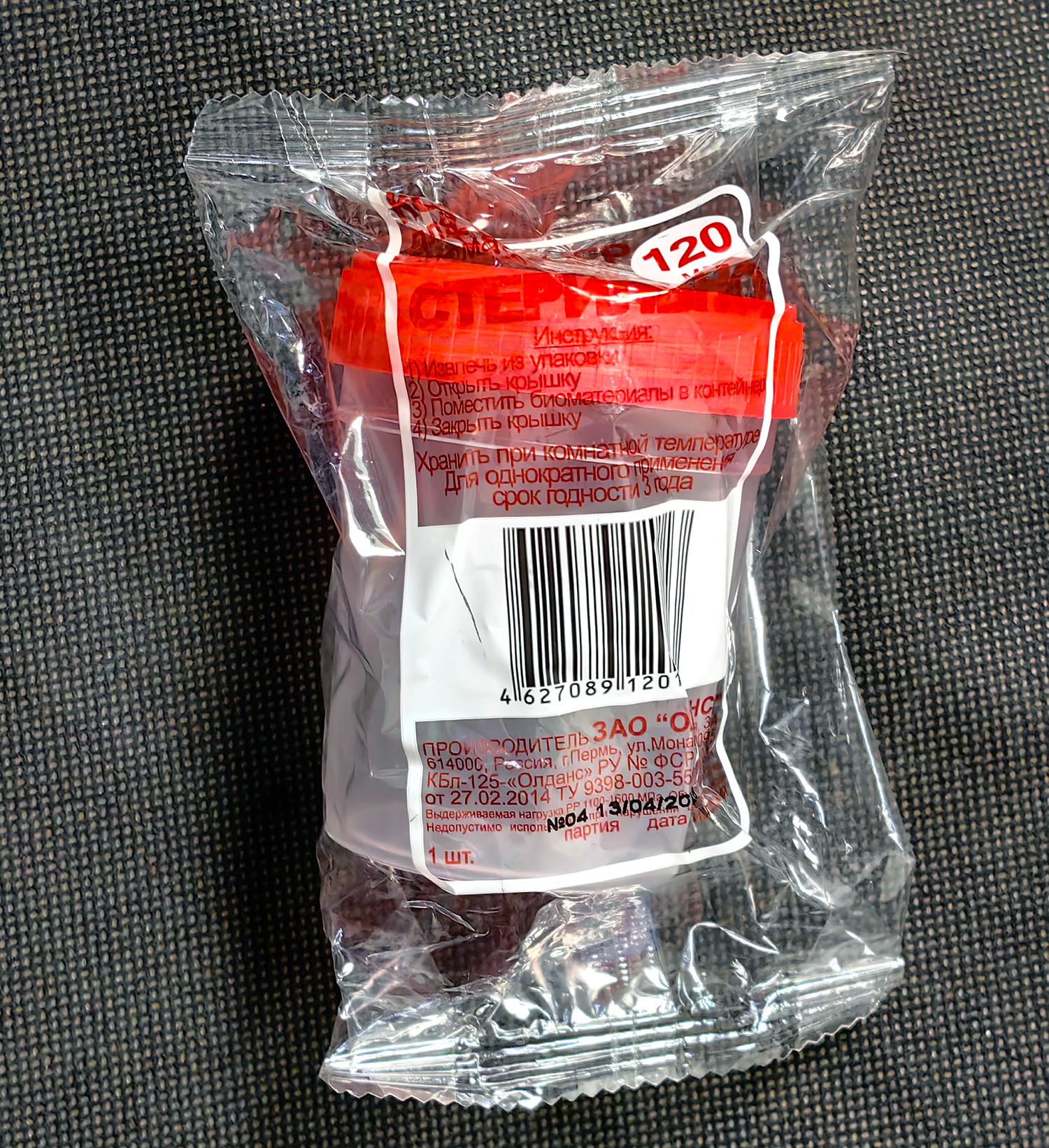 Контейнер 120мл лабораторный для взятия проб с завинч.крышкой, стерил, ПП,в инд.уп. Ол