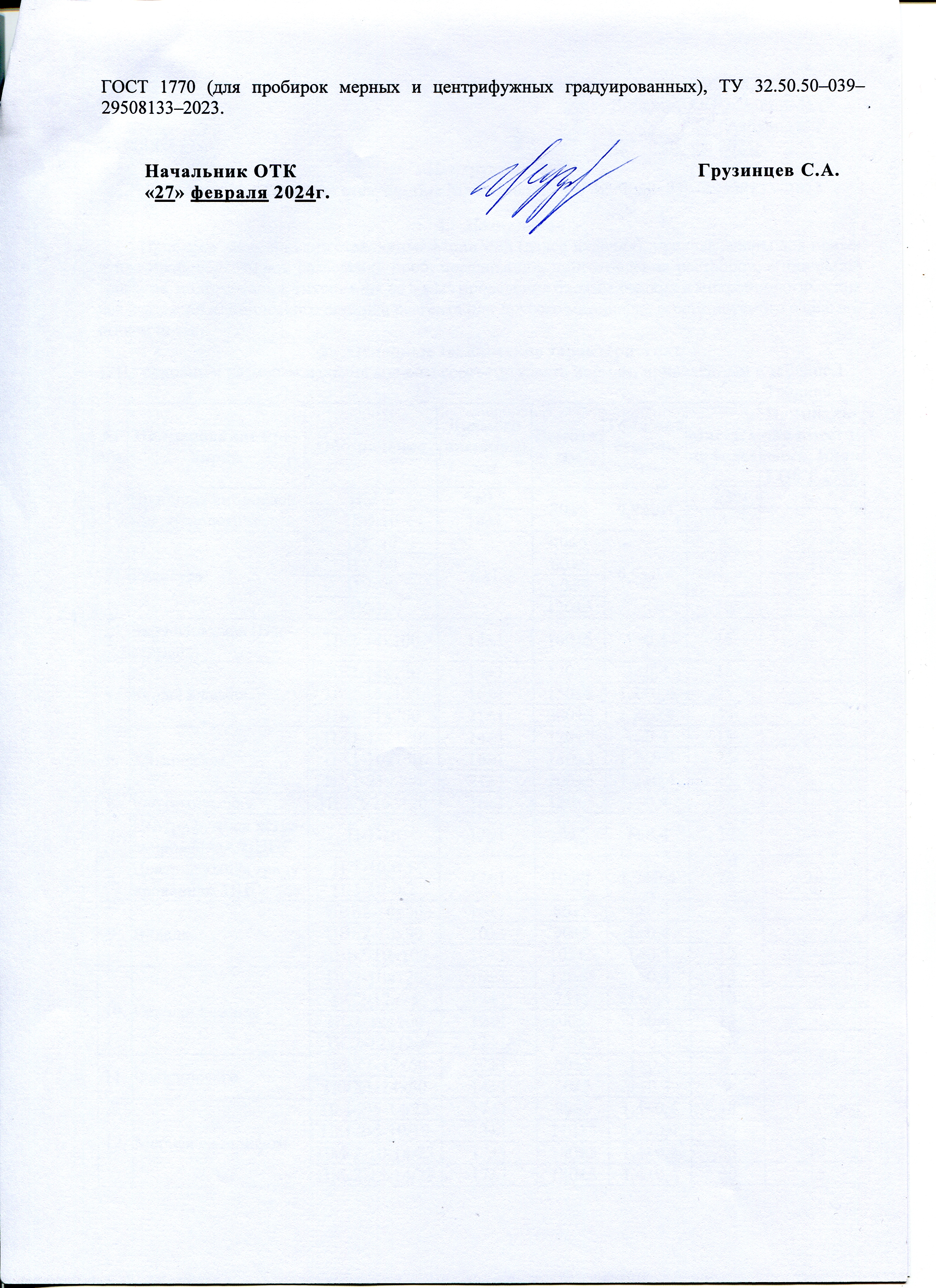Ориентировочная вместимость............ 6,0±1,0 мл Высота........................................................ 120 ± 5,0 мм Наружный диаметр................................... 10,0 ± 1,0 мм Разработана для химических, биологических и микробиологических лабораторных процедур. Изготовлена из стекла марки НС-3 по ГОСТ 19808-86. Пробирки изготовлены по ТУ 32.50.50-039-29508133-2023 в соответствии с требованиями ГОСТ 25336-82 и ГОСТ 23932-90. РУ № РЗН 2024/22475 от 22.04.2024 г. Мы рекомедуем |