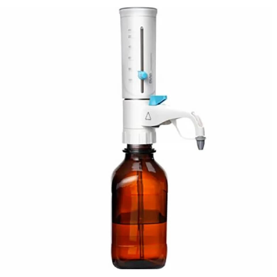 Разработан для операций отмеривания. Облегчает многократное объёмное дозирование химических реагентов или лекарств прямо из бутыли или флакона, исследователю не нужно прибегать к использованию пипетаторов. Сборно-разборное приспособление состоит из пластикового дозатора со стеклянным поршнем и длинной гибкой подающей трубки. Механический диспенсер имеет ползунок для установки объёма дозирования. В комплекте 5 адаптеров под самые распространенные диаметры горлышек бутылей: GL25 (32/25 мм), GL28 (32/28 мм), GL32 (45/32 мм), GL38 (45/38 мм), S40 (45/40 мм). Требования к дозируемым жидкостям: