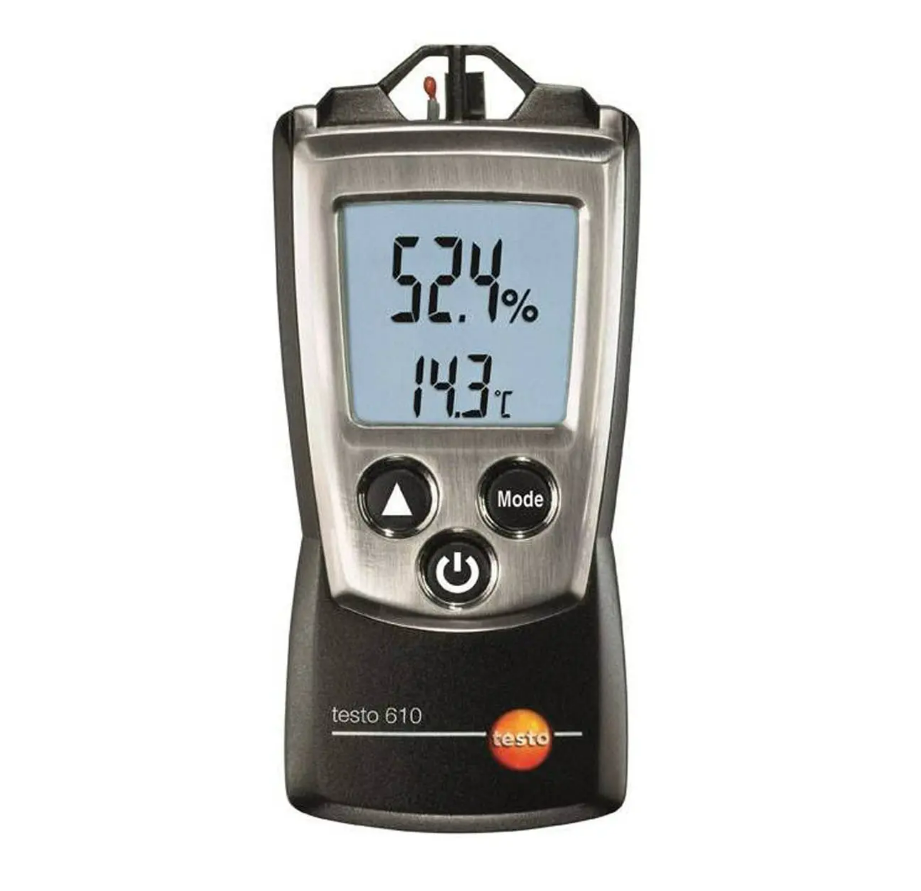 В ходе проведения оперативного контроля санитарно-гигиенических характеристик микроклимата в помещениях (с целью проверки их оптимальности) производятся замеры показателей температуры и влажности воздуха. Гигрометр термометр Testo 610 способен отслеживать показатели температуры воздуха (измеряя ее в градусах Цельсия или Фаренгейта), определять его относительную влажность, температуру точки росы и психрометрическую температуру (шарика смоченного термометра), а благодаря сверхкомпактным размерам и малому весу лучше всего подходит на роль карманного метеопоста, с помощью которого вы сможете контролировать климатические условия в жилых, производственных, складских, офисных и других помещениях.