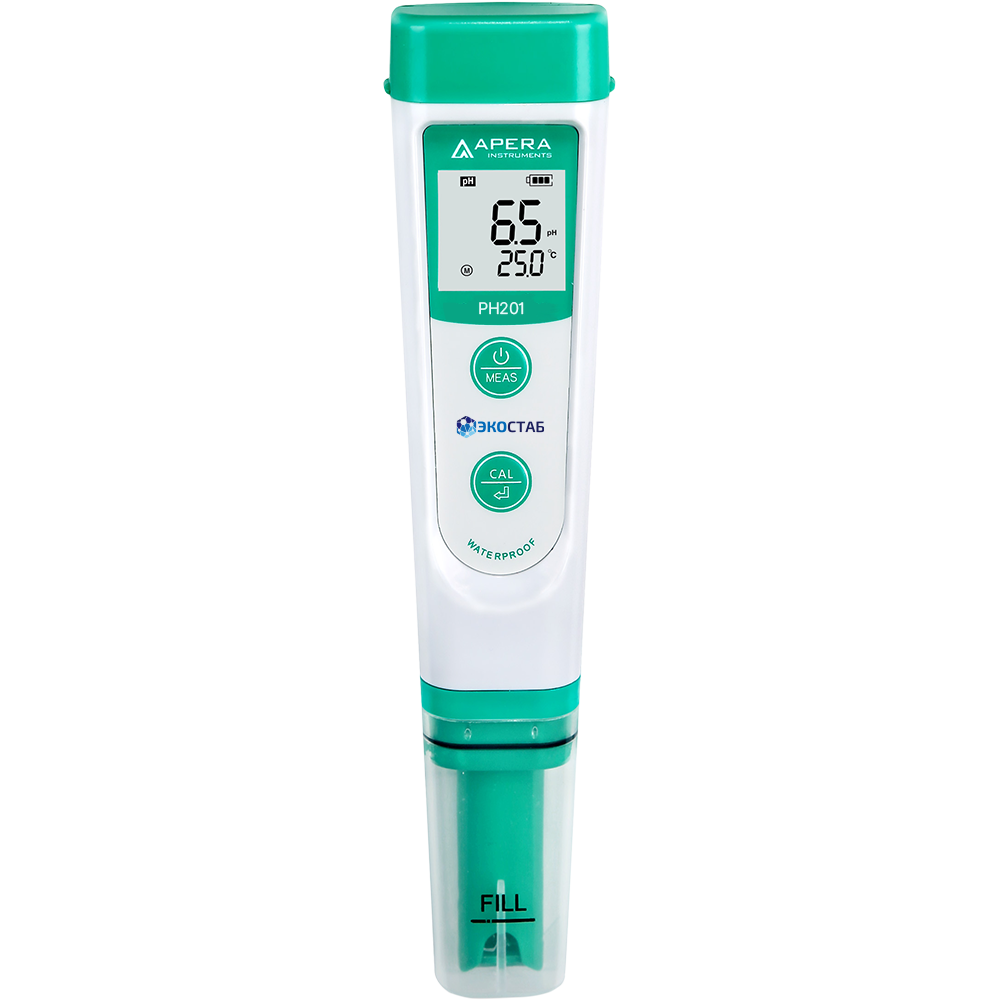 рН-метр карманный PH201 (0.00-14.00 pH; 0.0-50.0 C) без поверки, ЭКОСТАБ