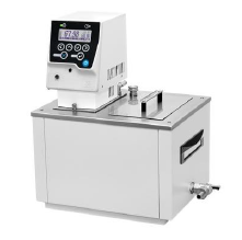 Жидкостный термостат ВТ8 с ванной из нержавеющей стали предназначен для поддержания заданной температуры жидкого теплоносителя, циркулирующего как во внутренней ванне, так и во внешних потребителях закрытого типа. В качестве внешних потребителей к термостату могут быть подключены контуры химических реакторов, измерительных приборов или другого лабораторного оборудования. Для работы при температурах ниже температуры окружающей среды термостат имеет встроенный теплообменник для подключения к водопроводу или проточному охладителю.