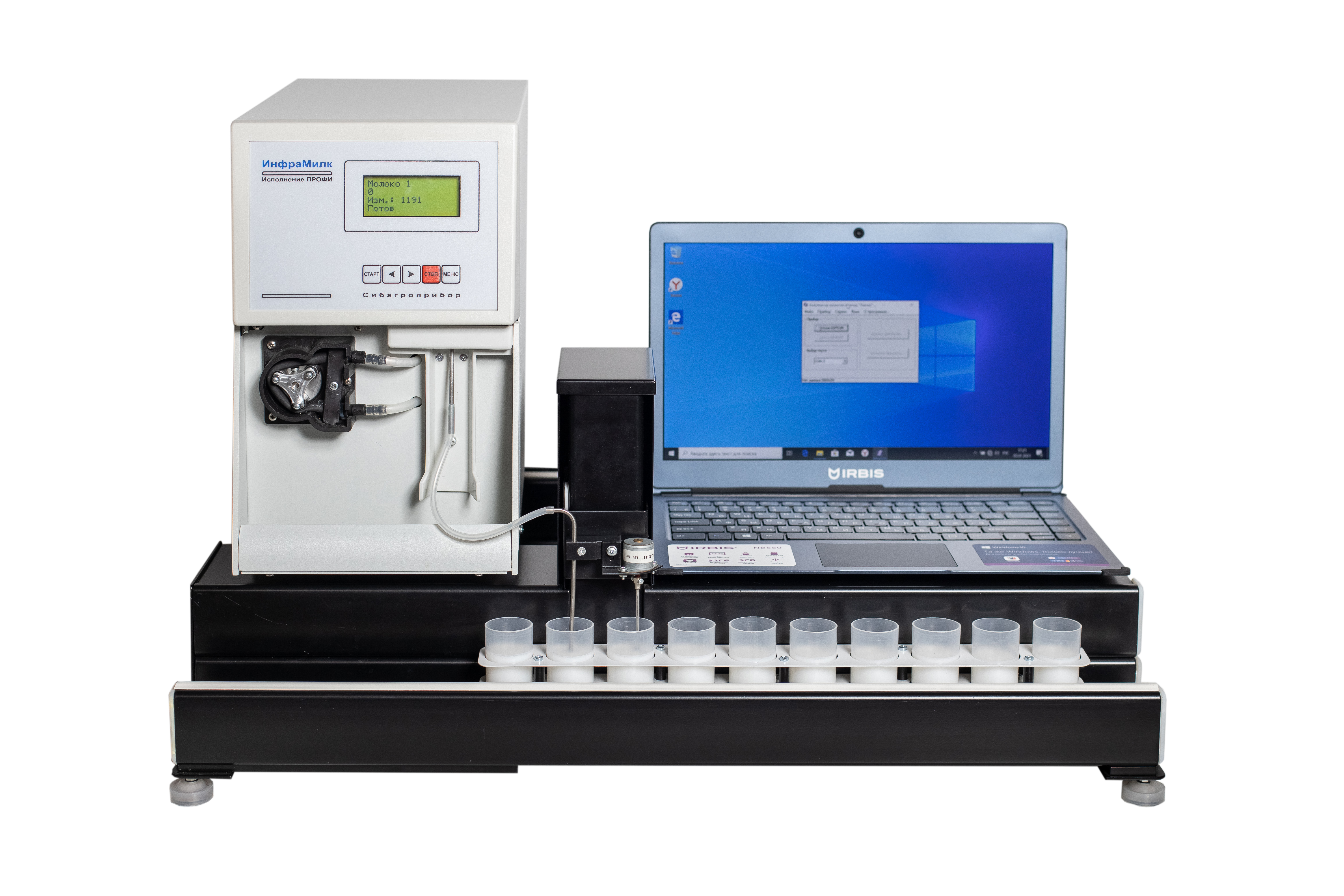 СВЕРХвысокий уровень производительности ИНФРАКРАСНЫЙ МЕТОД АНАЛИЗА Инфракрасный анализатор качества молока «ИнфраМилк» исполнение ПРОФИ – это новейшая разработка в области контроля качества молока, имеет в своей основе инфракрасный метод анализа, обеспечивающий получение наиболее точных и объективных результатов за минимальное время. Анализатор позволяет измерить без использования химических реактивов содержание массовой доли жира, белка, СОМО, плотности, добавленной воды, лактозы, минеральных солей, общего белка, калорийность и точку замерзания в пробе молока всего за 15 секунд! Инфракрасный анализатор предназначен для экспресс-анализа сырого молока в соответствии ГОСТ 32255-2013 «Межгосударственный стандарт. Молоко и молочная продукция. Инструментальный экспресс-метод определения физико-химических показателей идентификации с применением инфракрасного анализатора». Область применения Инфракрасный анализатор работает в ближней инфракрасной области, регистрирует поглощение света прошедшего через образец на специально подобранных длинах волн, а затем производит вычисления, используя математические алгоритмы, заложенные при градуировке анализатора. Быстрое получение данных о составе продукта на любом этапе производственного цикла, помогает сократить расходы по контролю, повысить качество продукции и достичь снижения ее себестоимости. Ближняя инфракрасная область (БИК) граничит с видимым светом, эта часть спектра безопасна как для оператора, так и для анализируемого объекта, что позволяет исследовать объект без его разрушения. Комплект поставки автоматизированного измерительного комплекса: