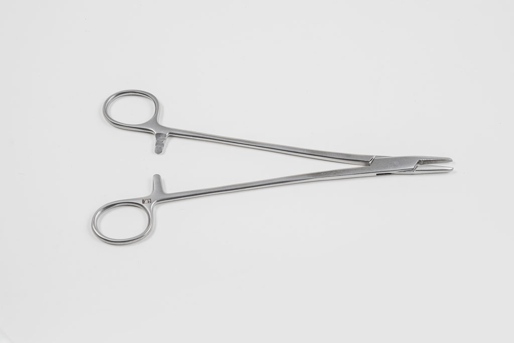 Иглодержатель общехирургический 200 миллиметровый предназначен для удержания и проведения через ткани хирургических игл при наложении швов. Иглодержатели по конструкции близки к кровоостанавливающим зажимам, однако рабочая часть их короче и, следовательно, усилие зажима иглы больше, чем усилие, действующее на ткани у кровоостанавливающих зажимов, в 2—3 раза. Это необходимо, чтобы игла надежно удерживалась губками. Кроме того, для предотвращения выскальзывания иглы из зажима, увеличивают коэффициент трения между иглой и губками зажима, делая на губках мелкую перекрещивающуюся нарезку с шагом 0,4—0,8 мм. Инструменты хирургические зажимные многоповерхностные по ТУ 32.50.13-001-16741141-2020: Иглодержатель общехирургический , 200 мм: арт. ВЗ-И-10-2 Характеристики товара